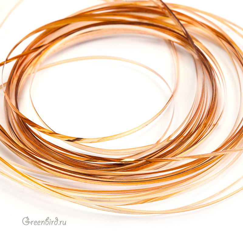 Бить — металлическая лента для вышивки. Ширина: 1 мм, цвет: светлое золото (красноватый оттенок). Производство: Индия. Цена указана за 20 полосок по 61 см (примерно 4,1 грамма).