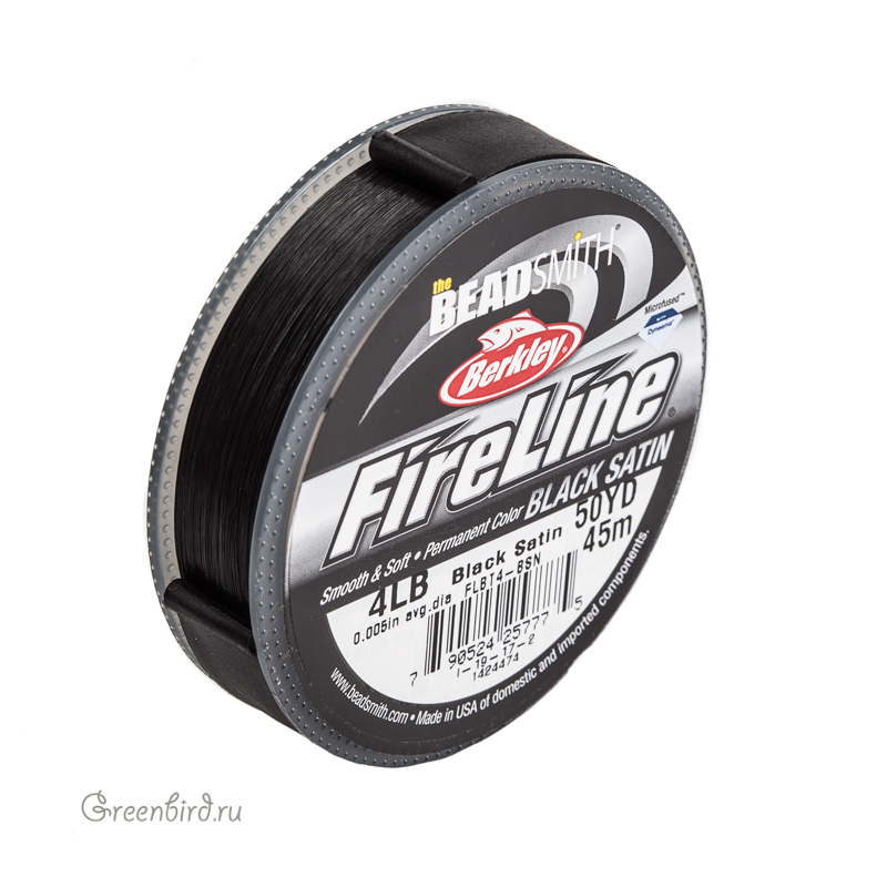 Нить-леска для плетения Fireline, цвет: Black Satin (черный сатин), толщина: 0,005" (0.12 мм). Файрлайн - это вощеный плетеный шнур из высококачественного полиэтилена, самого прочного волоконного материала. Производство: США. Цена указана за катушку 50 ярдов (примерно 45 метров).