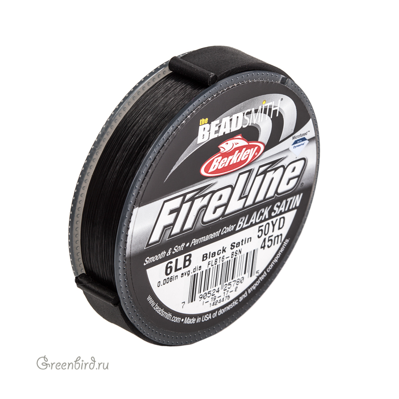 Нить-леска для плетения Fireline, цвет: Black Satin (черный сатин), толщина: 0,006" (0.15 мм). Файрлайн - это вощеный плетеный шнур из высококачественного полиэтилена, самого прочного волоконного материала. Производство: США. Цена указана за катушку 50 ярдов (примерно 45 метров).