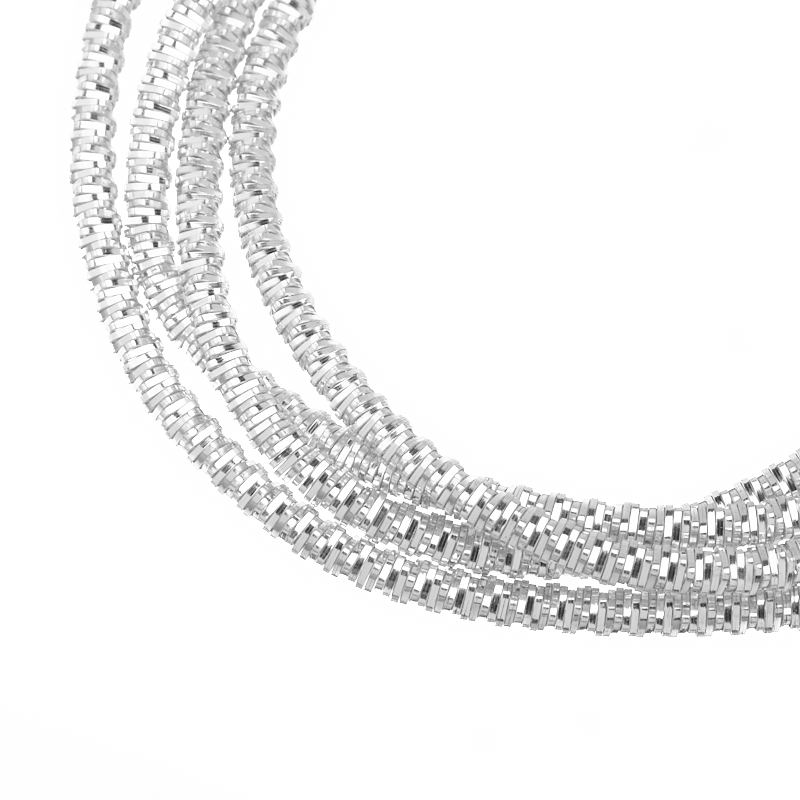 Канитель фигурная — металлическая нить для вышивания (медь), закрученная в трехгранную спираль. Диаметр: 2,5 мм, цвет: серебро. Производство: Индия. Цена указана за 5 грамм (примерно 55 см). Из-за особенностей материала непрерывность нити в упаковке не гарантируется, вы получите несколько отрезков разной длины.