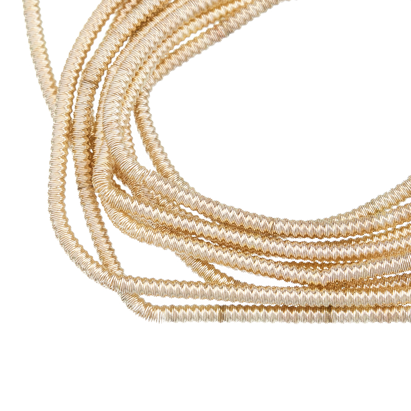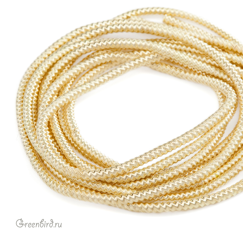 Канитель фигурная "зигзаг" — металлическая нить для вышивания (медь), закрученная в спираль. Диаметр: 1,7 мм, цвет: светлое золото. Производство: Индия. Цена указана за 5 грамм (примерно 1,1 метра). Из-за особенностей материала непрерывность нити в упаковке не гарантируется, вы получите несколько отрезков разной длины.