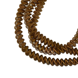 Канитель фигурная — металлическая нить для вышивания (медь), закрученная в винтовую спираль. Диаметр: 4,3 мм, цвет: античное золото. Производство: Индия. Цена указана за 5 грамм (примерно 25 см). Из-за особенностей материала непрерывность нити в упаковке не гарантируется, вы получите несколько отрезков разной длины.
