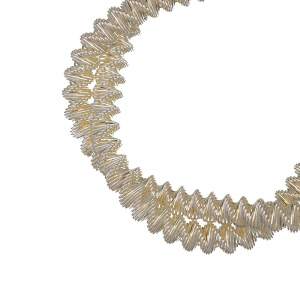 Канитель фигурная — металлическая нить для вышивания (медь), закрученная в винтовую спираль. Диаметр: 4,2 мм, цвет: светлое золото. Производство: Индия. Цена указана за 5 грамм (примерно 27 см). Из-за особенностей материала непрерывность нити в упаковке не гарантируется, вы получите несколько отрезков разной длины.