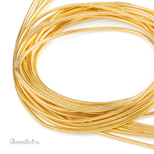 Канитель мягкая — тонкая металлическая нить для вышивания (медь), закрученная в спираль. Диаметр: 1 мм, цвет: яркое золото. Производство: Индия. Цена указана за 5 грамм (примерно 2,7 метра). Из-за особенностей материала непрерывность нити в упаковке не гарантируется, вы получите несколько отрезков разной длины.
