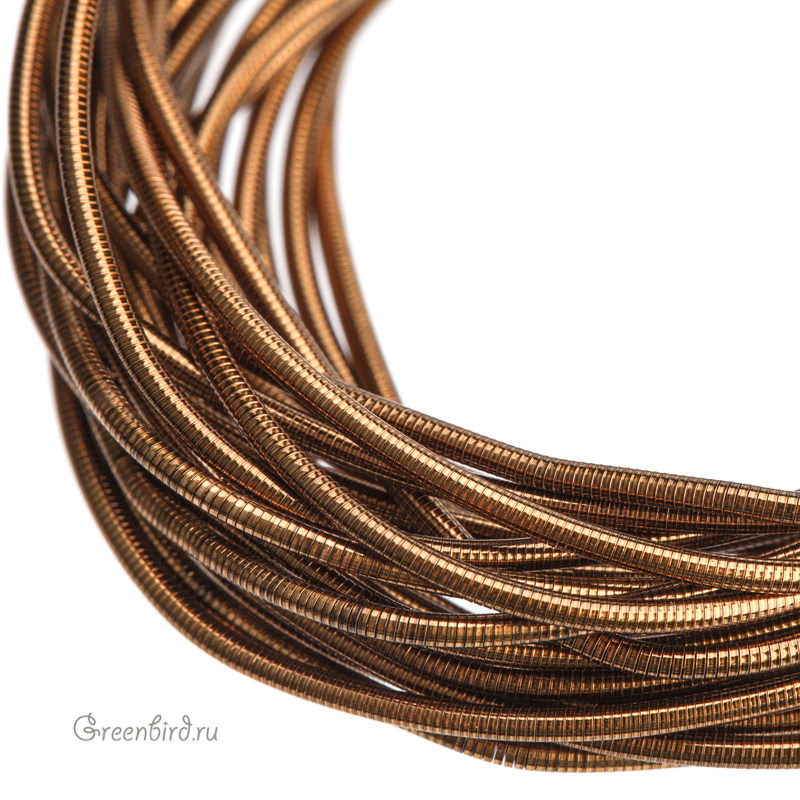 Канитель мягкая — тонкая металлическая нить для вышивания (медь), закрученная в спираль. Диаметр: 1 мм. Цвет: золотисто-коричневый. Производство: Индия. Обратите внимание: допускается неравномерность цвета (следы окисления). Цена указана за 5 грамм (примерно 3 метра). Из-за особенностей материала непрерывность нити в упаковке не гарантируется, вы получите несколько отрезков разной длины.