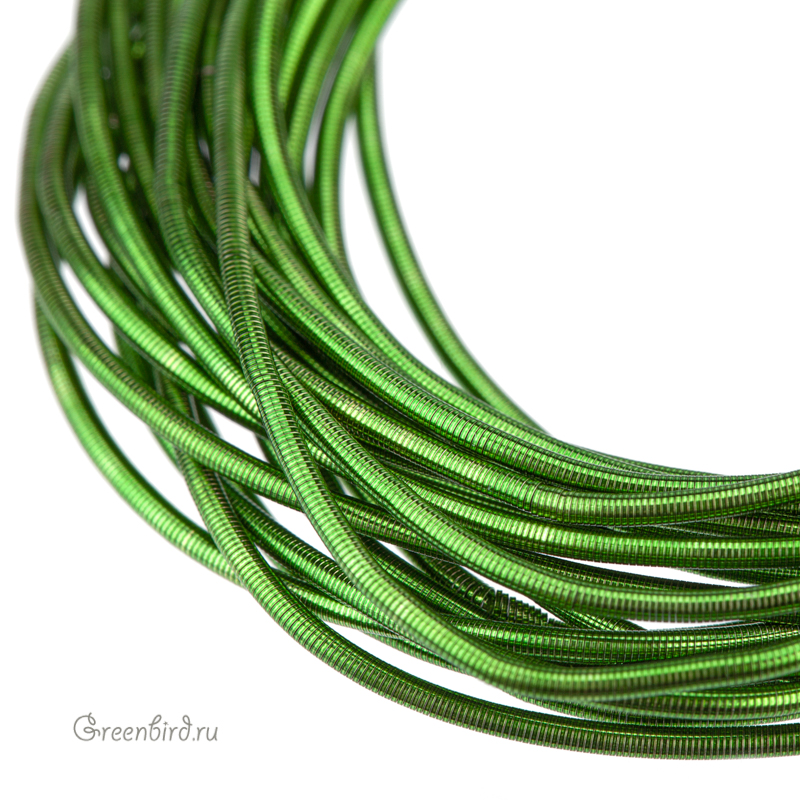 Канитель мягкая — тонкая металлическая нить для вышивания (медь), закрученная в спираль. Диаметр: 1 мм. Цвет: травяной зеленый. Производство: Индия. Цена указана за 5 грамм (примерно 2,5 метра). Из-за особенностей материала непрерывность нити в упаковке не гарантируется, вы получите несколько отрезков разной длины.