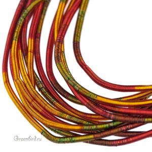 Канитель мягкая — тонкая металлическая нить для вышивания (медь), закрученная в спираль. Диаметр: 1 мм. Цвет: меланж (оранжевый/красный/зеленый/лаймовый/коричневый). Производство: Индия. Цена указана за 5 грамм (примерно 1,8 метра). Из-за особенностей материала непрерывность нити в упаковке не гарантируется, вы получите несколько отрезков разной длины.