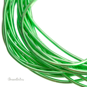Канитель мягкая — тонкая металлическая нить для вышивания (медь), закрученная в спираль. Диаметр: 1 мм, цвет: ярко-зеленый (Parrot Green), эффект: Ombre (очень легкие переходы цвета). Допускается наличие очень мелких пятнышек серебристого цвета. Производство: Индия. Цена указана за 5 грамм (примерно 2,8 метра). Из-за особенностей материала непрерывность нити в упаковке не гарантируется, вы получите несколько отрезков разной длины.