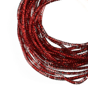 Канитель трунцал — металлическая граненая нить для вышивания из проволоки плоского сечения (медь), закрученная в спираль пятиугольной формы. Диаметр: 1,5 мм, цвет: помпейский красный. Производство: Индия. Цена указана за 5 грамм (примерно 2,4 метра). Из-за особенностей материала непрерывность нити в упаковке не гарантируется, вы получите несколько отрезков разной длины.