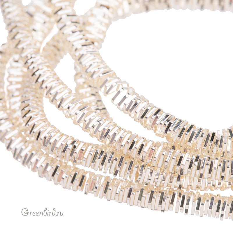 Канитель трунцал — металлическая граненая нить для вышивания из проволоки плоского сечения (медь), закрученная в спираль пятиугольной формы. Диаметр: 3,2 мм, цвет: светлое золото. Производство: Индия. Цена указана за 5 грамм (примерно 0,75 метра). Из-за особенностей материала непрерывность нити в упаковке не гарантируется, вы получите несколько отрезков разной длины.