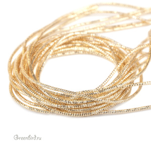 Канитель трунцал — металлическая граненая нить для вышивания из проволоки плоского сечения (медь), закрученная в спираль пятиугольной формы. Диаметр: 1,2 мм, цвет: золото. Производство: Индия. Цена указана за 5 грамм (примерно 3,25 метра). Из-за особенностей материала непрерывность нити в упаковке не гарантируется, вы получите несколько отрезков разной длины.