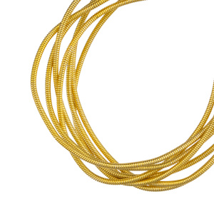 Канитель жесткая — металлическая нить для вышивания (медь), закрученная в спираль. Диаметр: 1,25 мм, цвет: темное золото. Производство: Индия. Цена указана за 5 грамм (примерно 0,80 метра). Из-за особенностей материала непрерывность нити в упаковке не гарантируется, вы получите несколько отрезков разной длины.