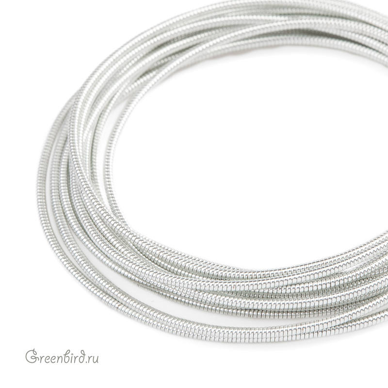 Канитель жесткая — металлическая нить для вышивания (медь), закрученная в спираль. Диаметр: 1 мм, цвет: серебро. Производство: Индия. Цена указана за 5 грамм (примерно 1,15 метра). Из-за особенностей материала непрерывность нити в упаковке не гарантируется, вы получите несколько отрезков разной длины.