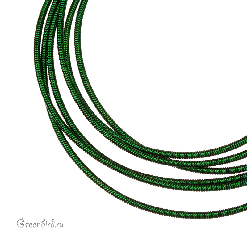 Канитель жесткая — металлическая нить для вышивания (медь), закрученная в спираль. Диаметр: 1,25 мм, цвет: темно-зеленый. Производство: Индия. Цена указана за 5 грамм (примерно 0,85 метра). Из-за особенностей материала непрерывность нити в упаковке не гарантируется, вы получите несколько отрезков разной длины.