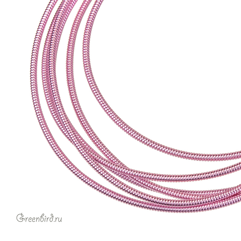 Канитель жесткая — металлическая нить для вышивания (медь), закрученная в спираль. Диаметр: 1,25 мм, цвет: розовый. Производство: Индия. Цена указана за 5 грамм (примерно 0,85 метра). Из-за особенностей материала непрерывность нити в упаковке не гарантируется, вы получите несколько отрезков разной длины.
