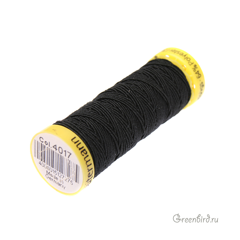 Эластичная нить Gutermann Nо. 18 (64% полиэстер, 36% полиуретан) – нить для создания рюшей, оборок и сборок, для вышивальных работ и вязания крючком. Цвет: черный. Производство: Германия. Цена указана за катушку (10 метров).