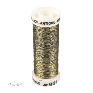 Тонкая металлизированная нить Au Ver à Soie Antique для вышивки и ручной работы. Цвет: #901 (светлое золото/черный). Состав: 35% полиэстер, 65% купро (тонкая шелковая вискоза). Производство: Франция. Цена указана за 1 шт. (100 метров).