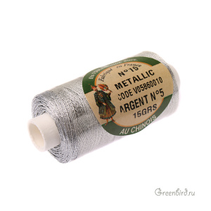 Металлизированная нить Au Chinois -используется в декоративной вышивке. Размер: №15, цвет: серебро. Производство: Париж, Франция. Цена указана за катушку (225 метров).