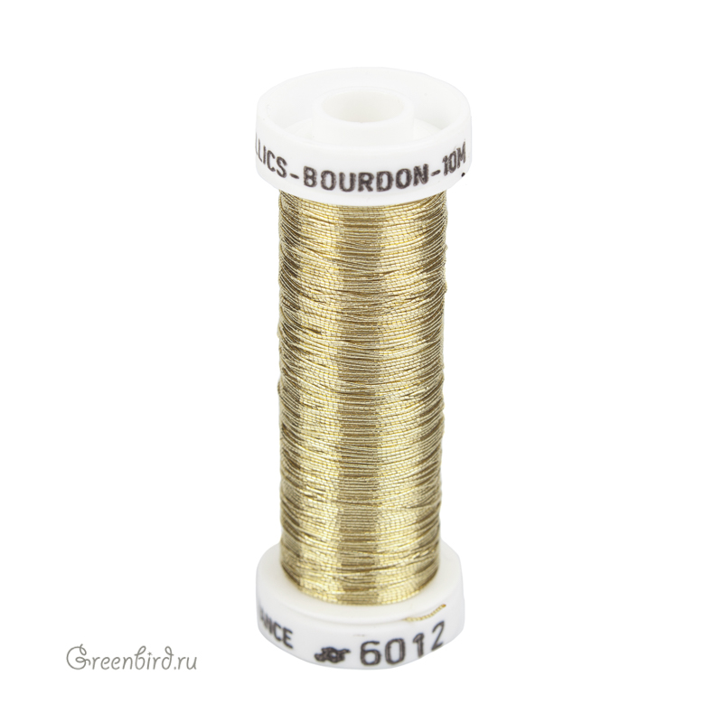 Металлизированная крученая нить Au Ver à Soie Bourdon для вышивки и ручной работы. Цвет: #6012 (светлая латунь). Состав: 35% полиэстер, 65% купро (тонкая шелковая вискоза). Производство: Франция. Цена указана за 1 шт. (10 метров).