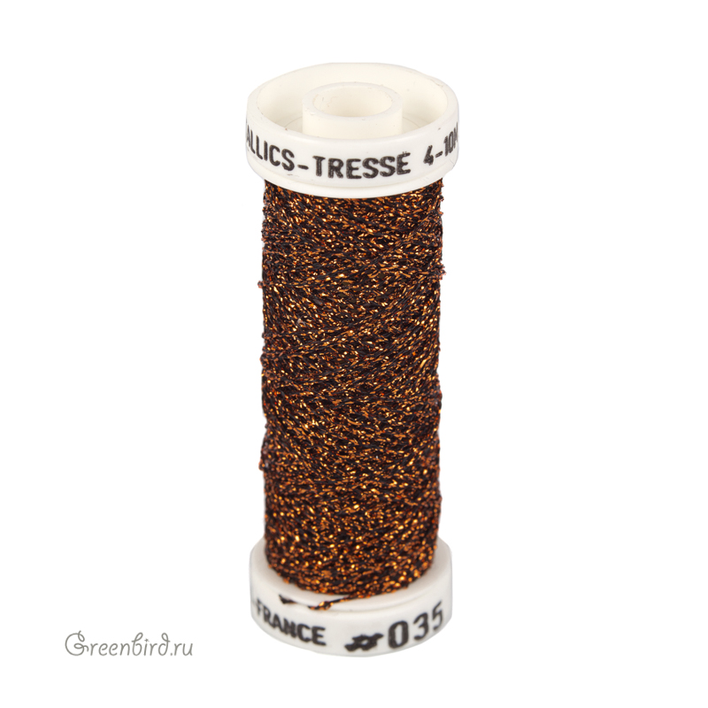 Металлизированная нить Au Ver à Soie Métallisé Tressé #4 для вышивки и ручной работы. Цвет: #035 (яркая медь / черный). Состав: 35% полиэстер, 65% купро (тонкая шелковая вискоза). Производство: Франция. Цена указана за 1 шт. (10 метров).