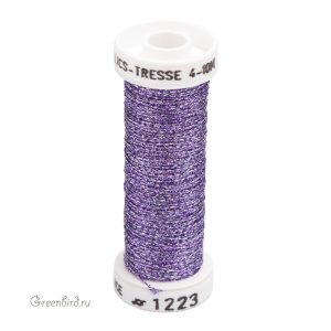 Металлизированная нить Au Ver à Soie Métallisé Tressé #4 для вышивки и ручной работы. Цвет: #1223 (фиолетовый/белый). Состав: 35% полиэстер, 65% купро (тонкая шелковая вискоза). Производство: Франция. Цена указана за 1 шт. (10 метров).