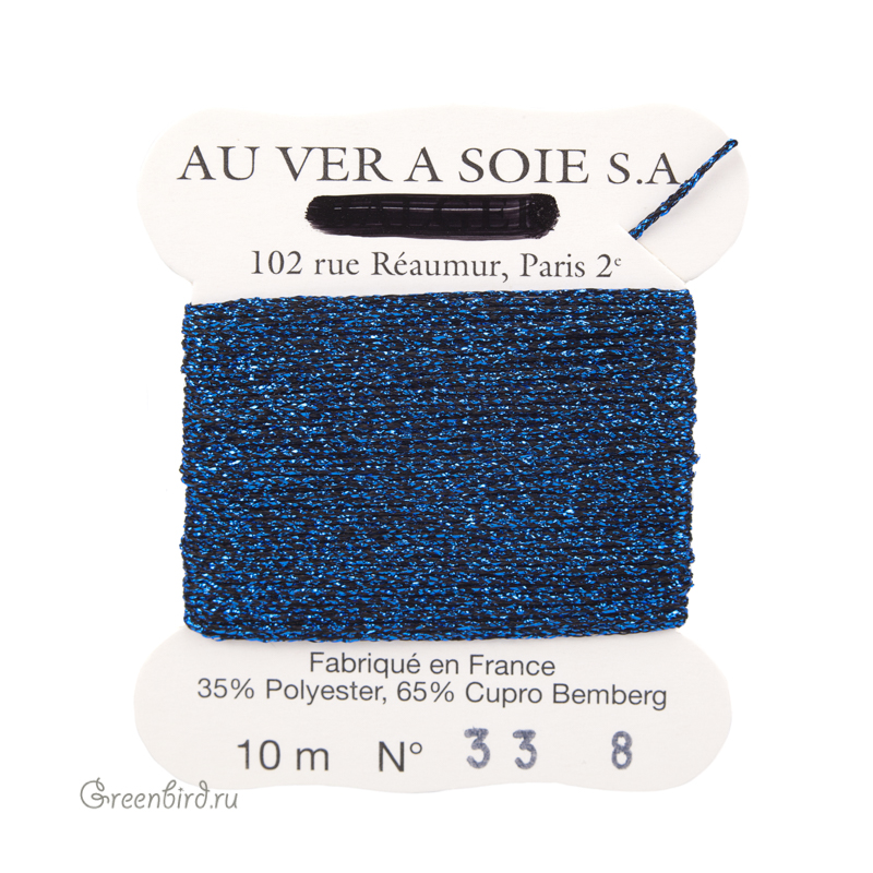 Металлизированная нить Au Ver à Soie Métallisé Tressé #8 для вышивки и ручной работы. Цвет: #033 (синий/черный). Состав: 35% полиэстер, 65% купро (тонкая шелковая вискоза). Производство: Франция. Цена указана за 1 шт. (10 метров).