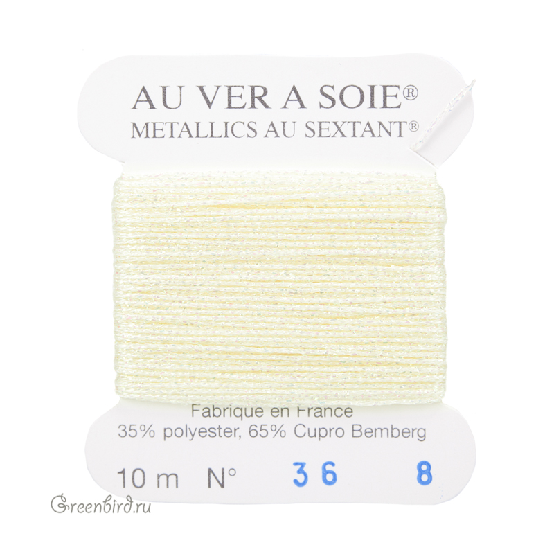 Металлизированная нить Au Ver à Soie Métallisé Tressé #8 для вышивки и ручной работы. Цвет: #036 (молочный). Состав: 35% полиэстер, 65% купро (тонкая шелковая вискоза). Производство: Франция. Цена указана за 1 шт. (10 метров).