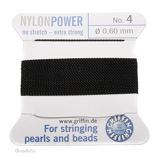 Нейлоновая нить с иглой для низания жемчуга Griffin, размер: 0,6 мм, цвет: черный. Цена указана за упаковку (нить 2 метра, игла).