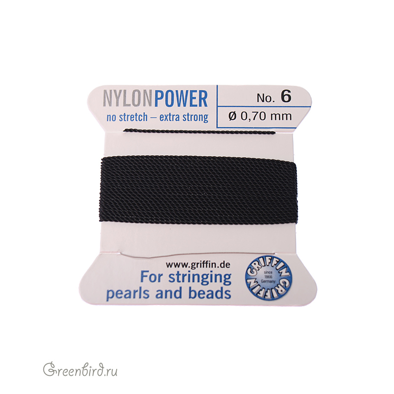 Нейлоновая нить с иглой для низания жемчуга Griffin, размер: 0,70 мм, цвет: черный. Производство: Германия. Цена указана за упаковку (нить 2 метра, игла).