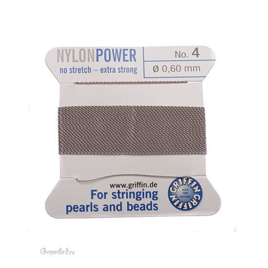 Нейлоновая нить с иглой для низания жемчуга Griffin, размер: 0,6 мм, цвет: серый. Цена указана за упаковку (нить 2 метра, игла).