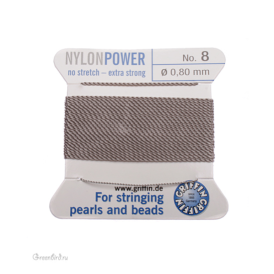 Нейлоновая нить с иглой для низания жемчуга Griffin, размер: 0,8 мм, цвет: серый. Цена указана за упаковку (нить 2 метра, игла).