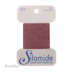 Нейлоновые вощеные нити для бисероплетения Silamide на картонной катушке, размер: А, цвет: пыльная роза. Цена указана за 1 катушку – 40 ярдов (36,5 метров).