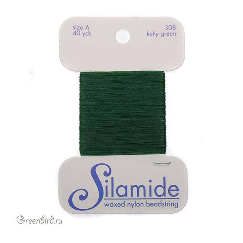 Нейлоновые вощеные нити для бисероплетения Silamide на картонной катушке, размер: А, цвет: зелёный. Цена указана за 1 катушку – 40 ярдов (36,5 метров).