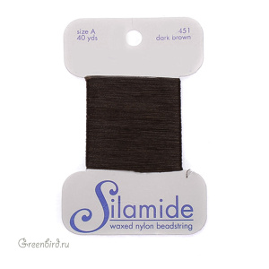 Нейлоновые вощеные нити для бисероплетения Silamide на картонной катушке, размер: А, цвет: тёмно-коричневый. Цена указана за 1 катушку – 40 ярдов (36,5 метров).