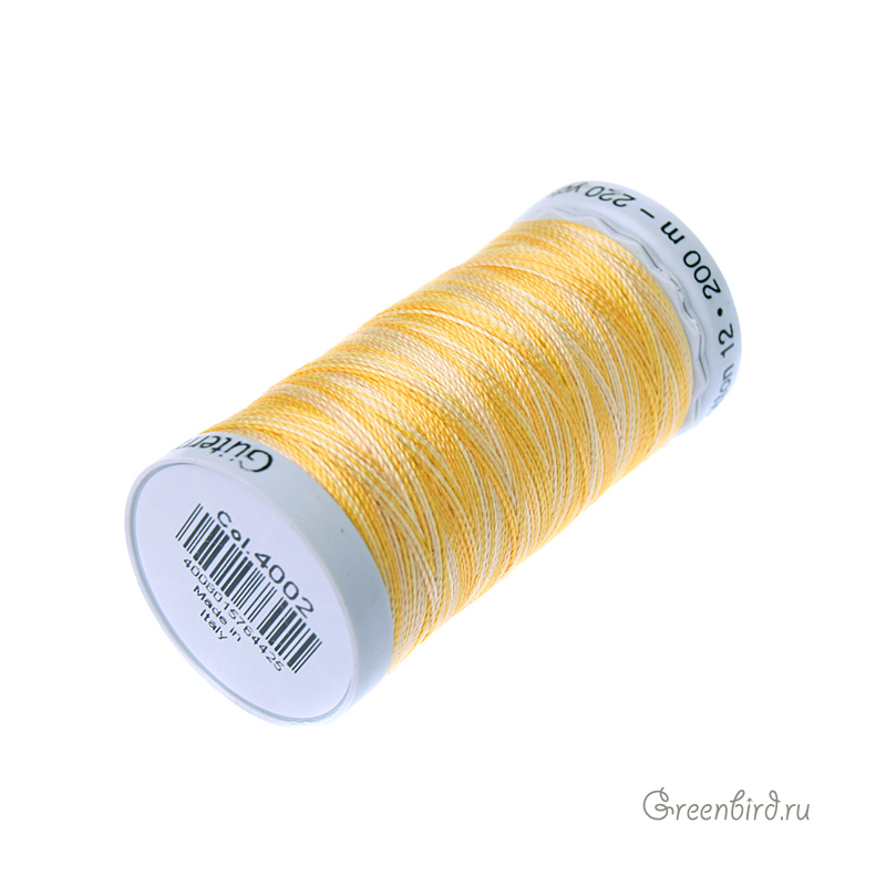 Нить Gutermann Sulky Cotton 12 (100% хлопок) – подходит для вязания крючком. Цвет: желтый/белый. Производство: Италия. Цена указана за катушку (200 метров).