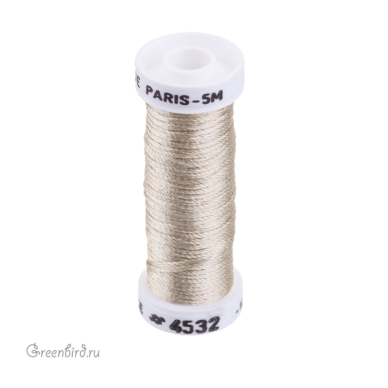 Объемная крученая шелковая нить Au Ver à Soie Soie de Paris для вышивки и ручной работы. Цвет: #4532 (серо-бежевый). Состав: 100% шёлк (Pure Silk). Производство: Франция. Цена указана за 1 шт. (5 метров).