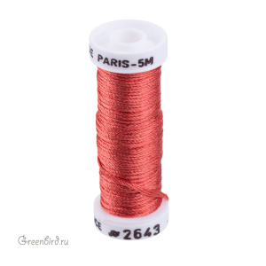 Объемная крученая шелковая нить Au Ver à Soie Soie de Paris для вышивки и ручной работы. Цвет: #2643 (оранжево-красный). Состав: 100% шёлк (Pure Silk). Производство: Франция. Цена указана за 1 шт. (5 метров).