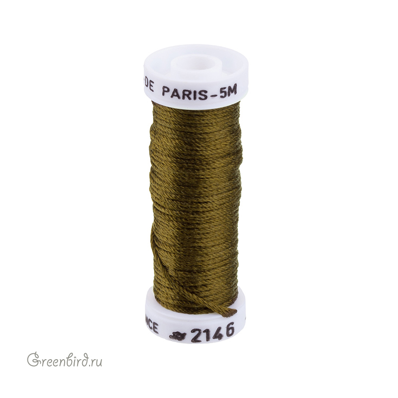 Объемная крученая шелковая нить Au Ver à Soie Soie de Paris для вышивки и ручной работы. Цвет: #2146 (хаки). Состав: 100% шёлк (Pure Silk). Производство: Франция. Цена указана за 1 шт. (5 метров).