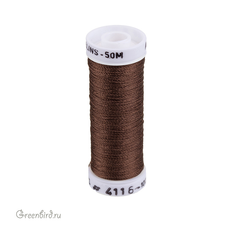 Крученая шелковая нить Au Ver à Soie Soie Gobelins для вышивки и ручной работы. Подходит для швейных и вышивальных машин, а также для ткачества. Цвет: #4116 (коричневый). Состав: 100% шёлк. Производство: Франция. Цена указана за 1 шт. (50 м).