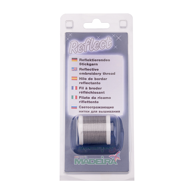 Нитки светоотражающие Madeira Reflect рекомендуются для создания светоотражающей вышивки и декоративных швов на детской одежде или жилетах безопасности, так как светятся в темноте под светом автомобильных фар.