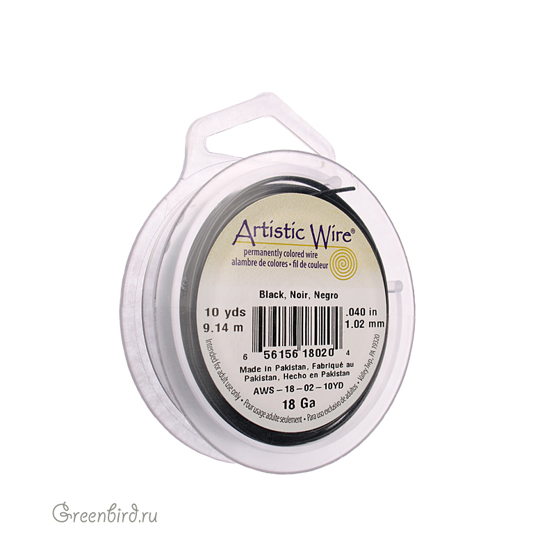 Проволока для рукоделия, толщина: 18 Ga (1.024 мм), цвет: черный, производитель: Artistic Wire (США/Пакистан). Цена указана за катушку 9 метров.