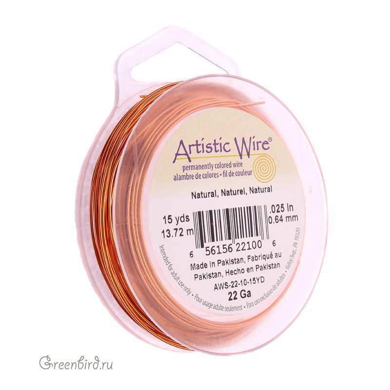 Проволока для рукоделия Artistic Wire 22 Ga (0.644 мм), цвет: Copper Natural(чистая медь), производство: Пакистан. Цена указана за катушку 13 метров.