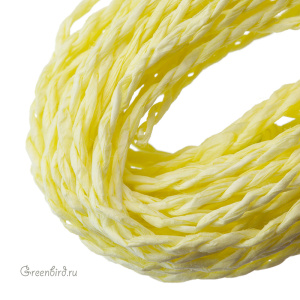 Крученая рафия — нейлоновая лента для плетения и интерьерных изделий. Ширина: 2 мм, цвет: лайм. Производство: Индия. Цена указана за 5 метров.