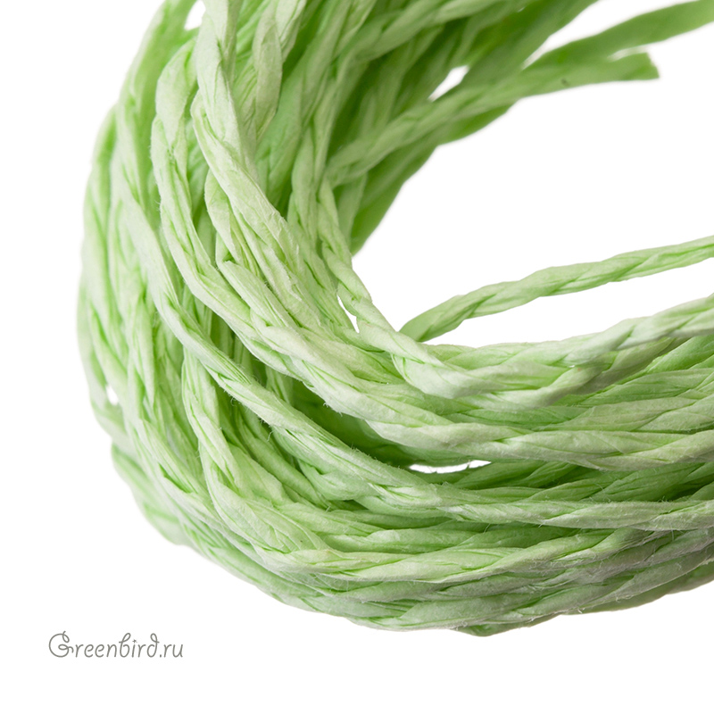 Крученая рафия — нейлоновая лента для плетения и интерьерных изделий. Ширина: 2 мм, цвет: светло-зеленый. Производство: Индия. Цена указана за 5 метров.