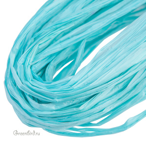 Рафия — нейлоновая лента для вышивки. Ширина: 5 мм, цвет: бирюзово-голубой, матовый финиш. Производство: Индия. Цена указана за 5 метров.