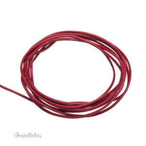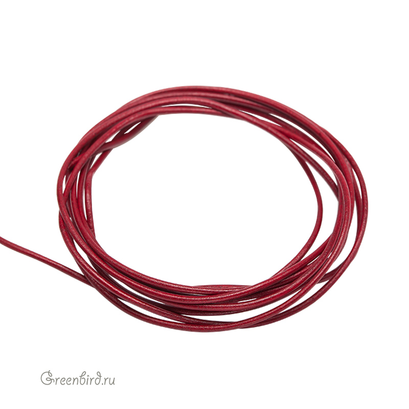 Круглый шнур, цвет: гранат, толщина: 1.5 мм, материал: натуральная кожа. Производство: Греция. Цена указана за 1 метр. При заказе 2 или 3 единиц этого товара вы получите отрезок длиной 2 или 3 метра соответственно.