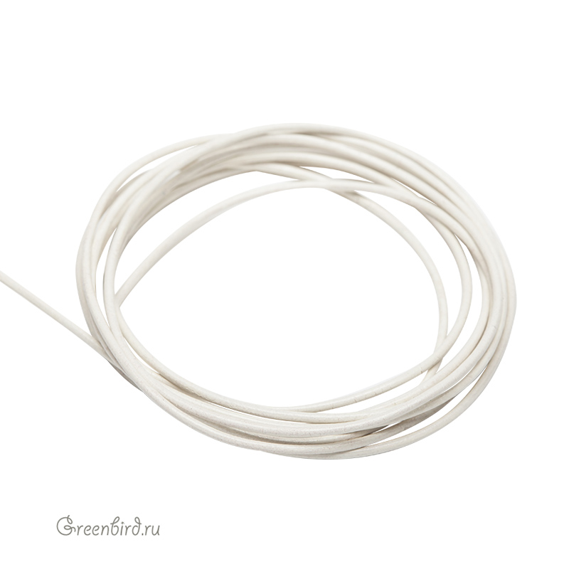 Круглый шнур, цвет: белый, толщина: 1.5 мм, материал: натуральная кожа. Производство: Греция. Цена указана за 1 метр. При заказе 2 или 3 единиц этого товара вы получите отрезок длиной 2 или 3 метра соответственно.