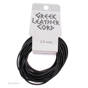 Круглый шнур, цвет: черный, толщина: 2 мм, материал: натуральная кожа. Производство: Греция. Цена указана за упаковку (5 метров).