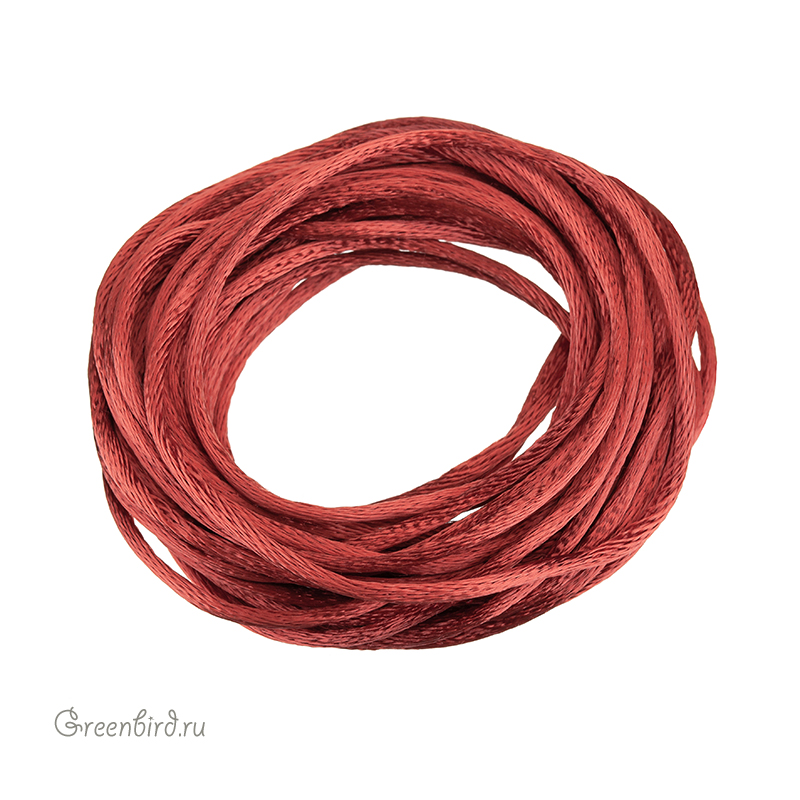 Шнур для работы в японской технике кумихимо (вискоза/хлопок), цвет: темный красный, толщина: 2 мм, производство: США. Цена указана за упаковку (5 метров).