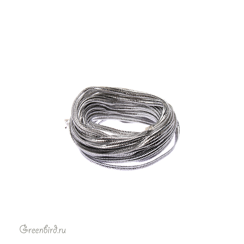 Сутаж, цвет: серебро, материал: металлизированные нити (гладкий на ощупь), толщина: 3 мм, производство: США. Цена указана за 5 метров.
